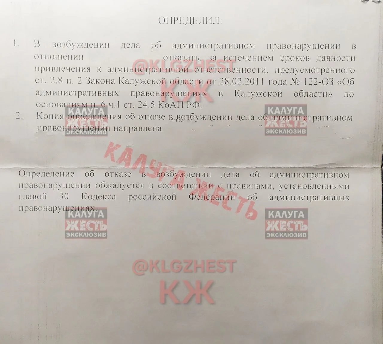 Калужский районный суд сегодня вынес постановление для водителя газели.