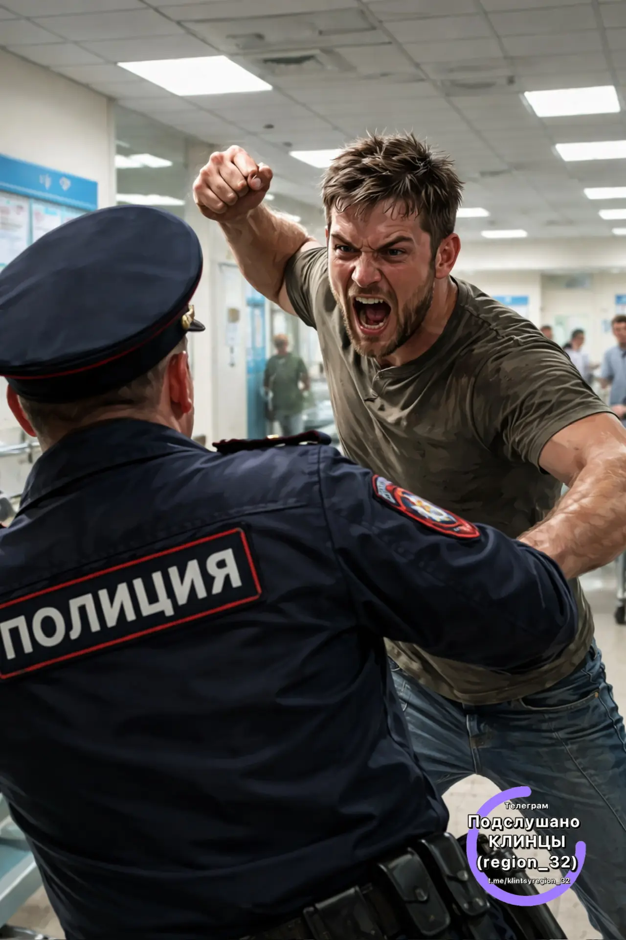 Инцидент произошёл днём 16 сентября 2025 года. Мужчина находился в приёмном покое поликлиники в Клинцах после совершения административного правонарушения. В какой-то момент он напал на сотрудника патрульно-постовой службы полиции и ударил его по голове.