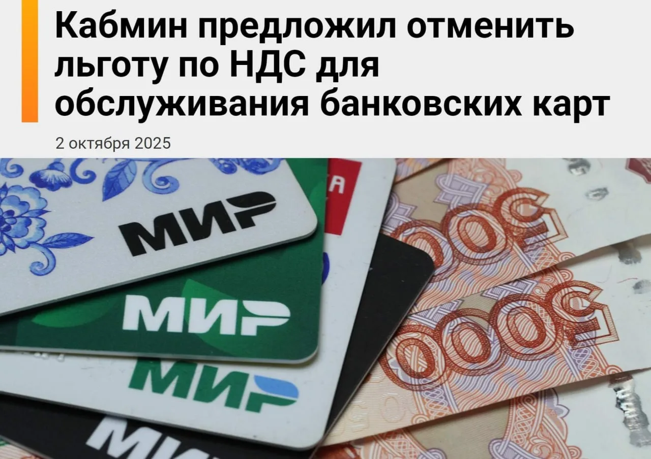 —Правительство внесло в Госдуму законопроект об отмене льготы по НДС для операций с банковскими картами;