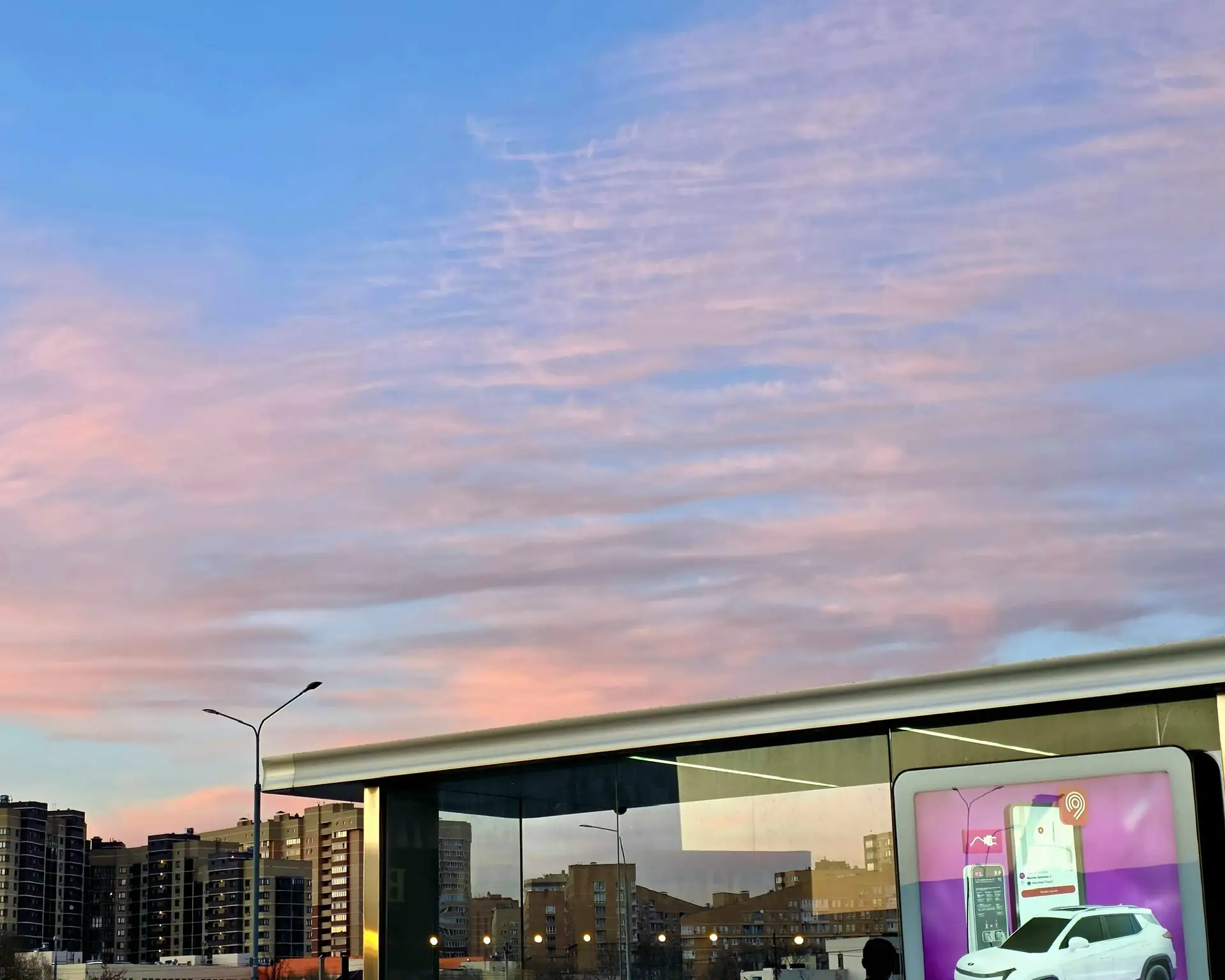 Красивый закат у метро «Новомосковская»