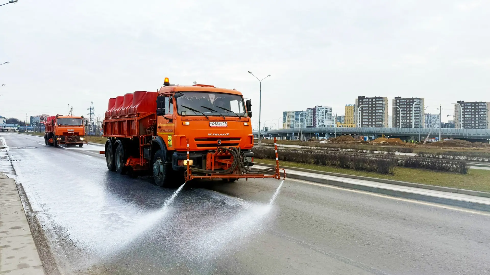 Парк спецтехники для обслуживания дорог и дворовых территорий района Коммунарка в этом году увеличился на 23 единицы и пополнился поливомоечными и подметально-уборочными машинами.