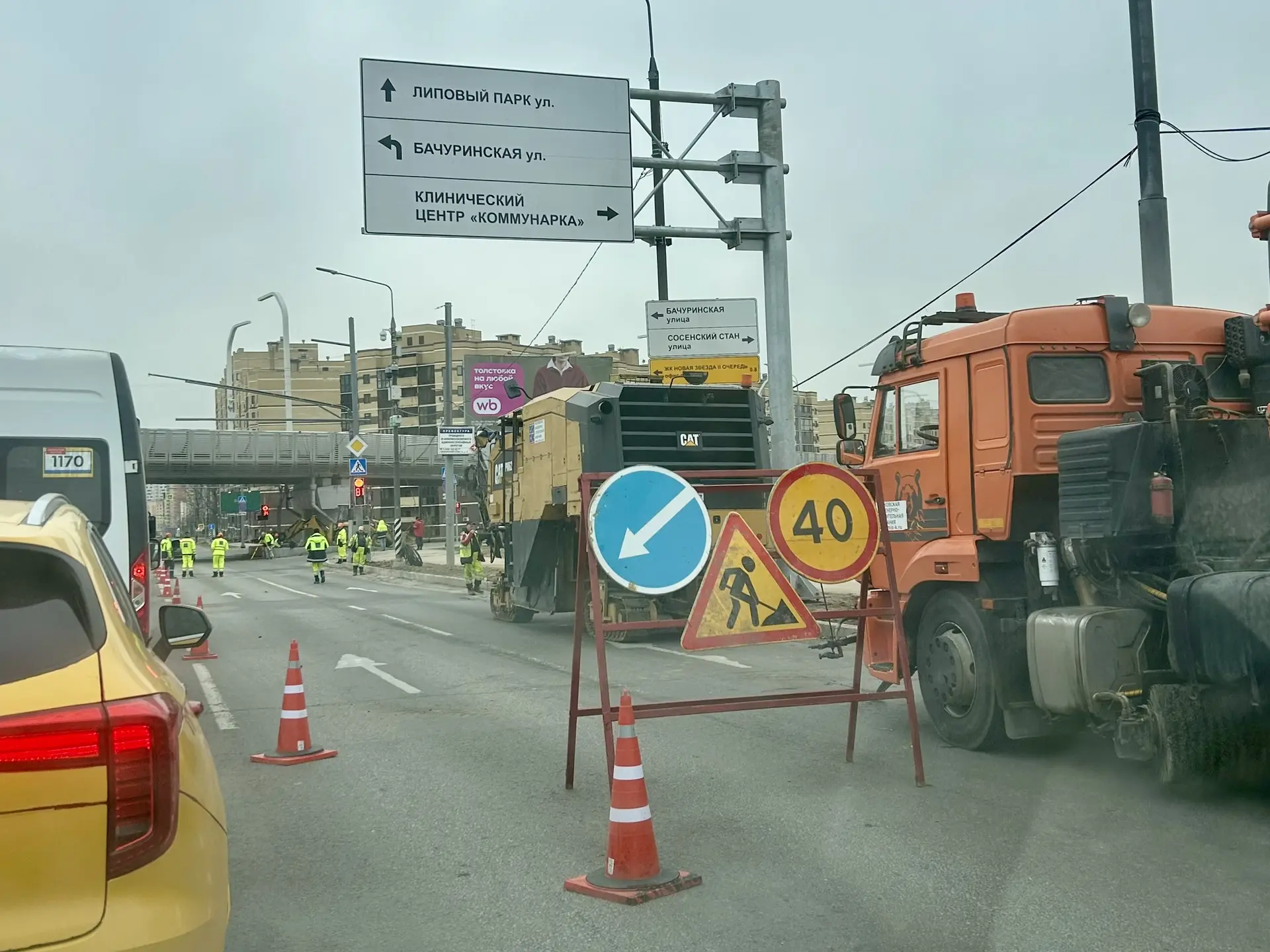 Дорожный хаос из-за отсутствия разметки продолжается на дублере Коммунарского шоссе.