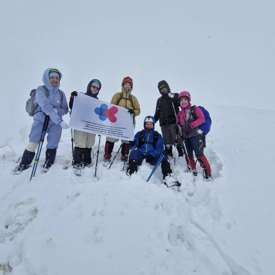 Врачи из ММКЦ Коммунарка покорили один из пиков Кавказа и водрузили на него флаг больницы.