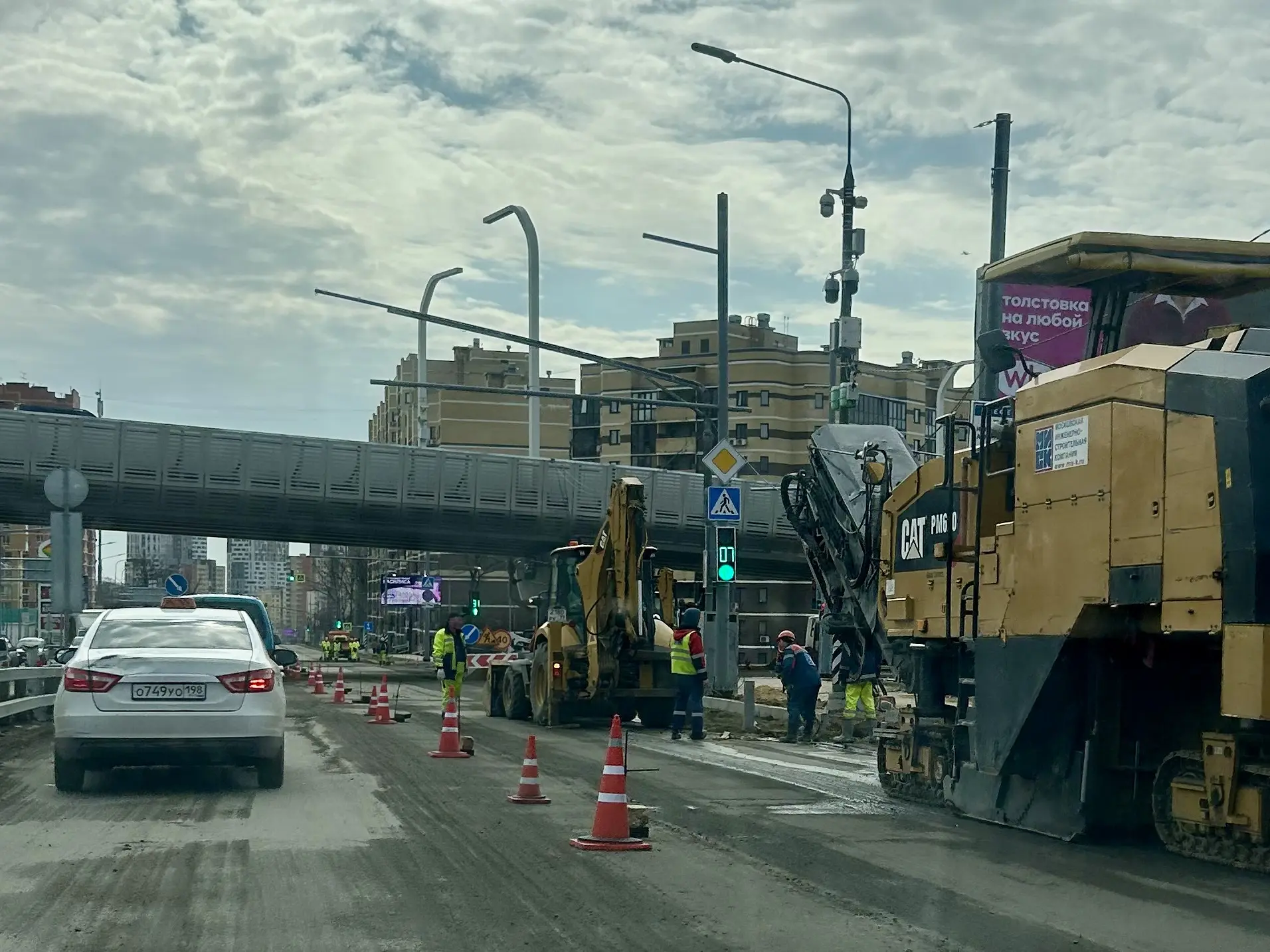 Сняли 2 полосы асфальта на А.Монаховой, проезд только по левой. Готовьтесь стоять долго.