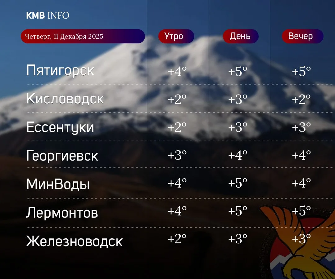 Доброе утро, КавМинВоды! В столице СКФО Пятигорске сегодня: пасмурно
