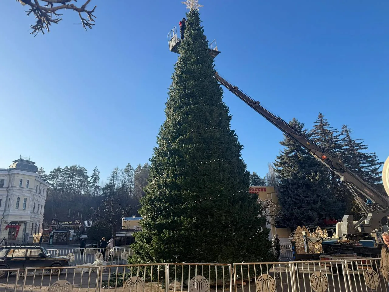 🎄В Кисловодске завершают установку главной городской ёлки на Курортном бульваре