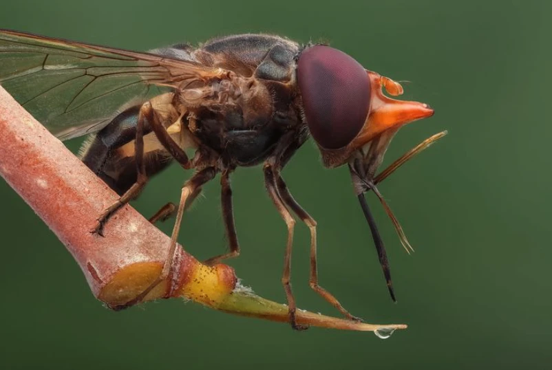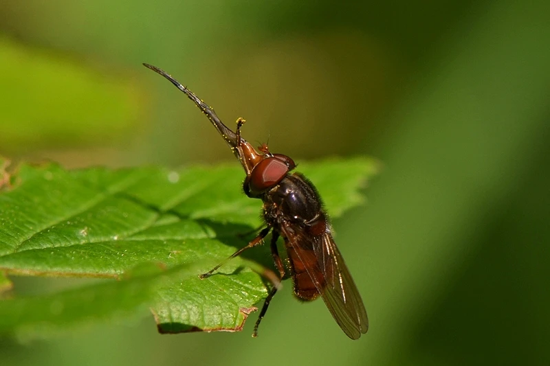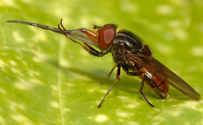 Большинство мух-журчалок имеют короткие и расширяющиеся книзу хоботки, которыми удобно хлебать пролитый на пол чай, варенье, жидкие отходы и сок с разрезанных апельсинок. Некоторые из них приспособились потреблять нектар или пыльцу из цветков с коротким венчиком, но только рингии с их огромными хлюпалками способны вкусить нектара из любых цветков по своему желанию. И, между делом, опылить их. Осталось лишь выяснить: как они с такими огромными штуковинами летают?