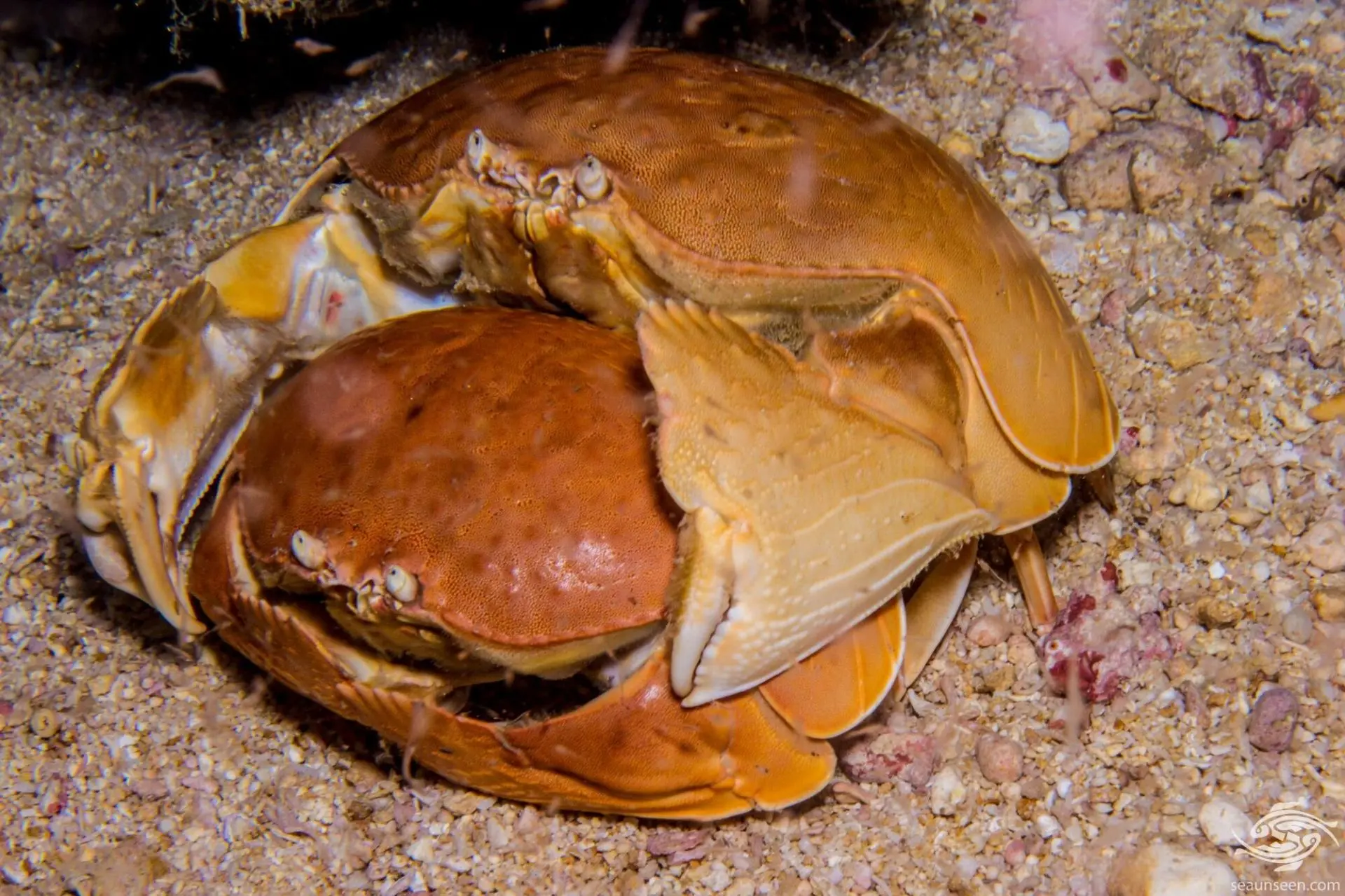 Битва за даму сердца происходит следующим образом. Когда самка жаждет внимания и страстей, она выделяет феромоны, на которые ночью приходят 2 самца. Они устраивают красивую бескровную схватку, в ходе которой один краб прогоняет другого. Затем он нежно обхватывает самку и носит её на руках несколько дней. В природе сложно найти что-то благороднее, красивее и изящнее. Если забыть о нюансах, конечно.