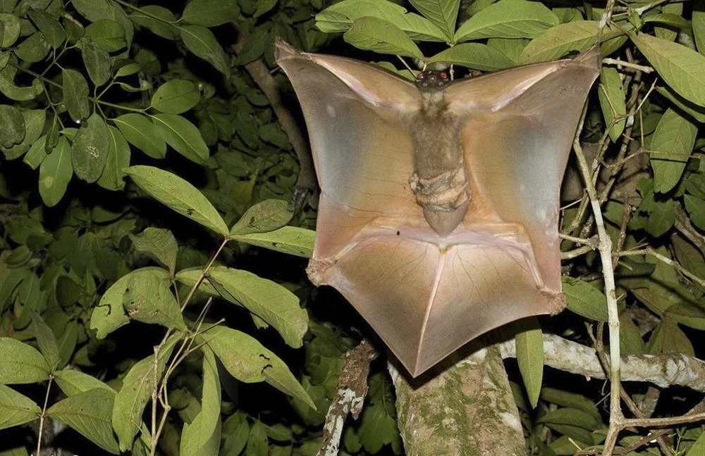 Ладно, полноценными крыльями это не назовёшь, летать наш герой не умеет. Но всё тело животины, от головы до хвоста — один большой парашют, на котором зверёк может пролететь 140 м за раз и 1,5 км за ночь! Так недоделанный бэтмен перемещается от дерева к дереву в поисках всевозможных ништяков: фруктов, листьев и даже цветочков.