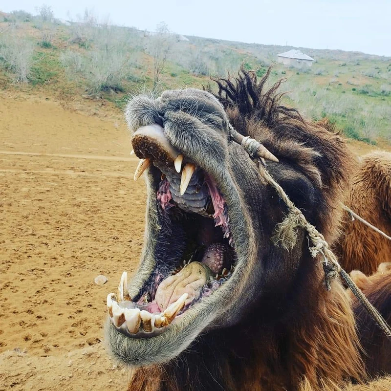 Самцы тоже устраивают друг с другом «перестрелки» во время брачного сезона. Так они предупреждают драку. Несмотря на милую морду, клыки верблюда достигают 7.5 см. Даже у льва и тигра зубы меньше! Так зачем убиваться и получать раны, когда можно просто опозорить оппонента?