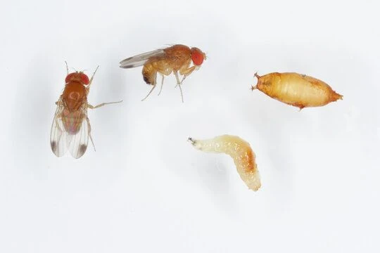 Наша привычная фруктовая дрозофила — это в среднем 2 – 2,5 мм, дамы, как водится у насекомых, крупнее кавалеров. Что касается названия, то с греческого вольно это можно перевести как «Водолюбы». Кстати о названии: даже у самых педантичных чистюль порой заводятся дрозофилы, достаточно принести на фруктах личинок из магазина, а повзрослевшие мухи с радостью будут квартироваться в ванной или в туалете — лишь бы была сырость.