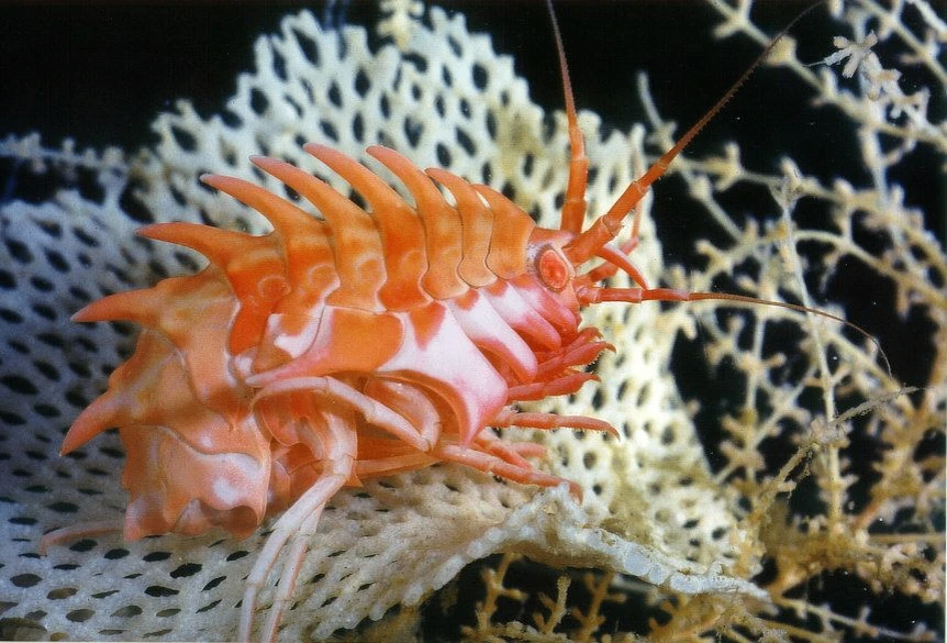 Глубокие воды искажают даже самые привычные формы. Эпимерии — живое тому доказательство. Обычная креветка забралась на край мира и опустилась туда, где о солнечном свете даже не слышали. Как итог: панцирь, унизанный шипами. Безучастный взгляд существа, что познало бесконечное вечное. Демонически-красный, будто бы в напоминание об инфернальной природе. Вот плата за жизнь в холоде, голоде и вечном мраке.