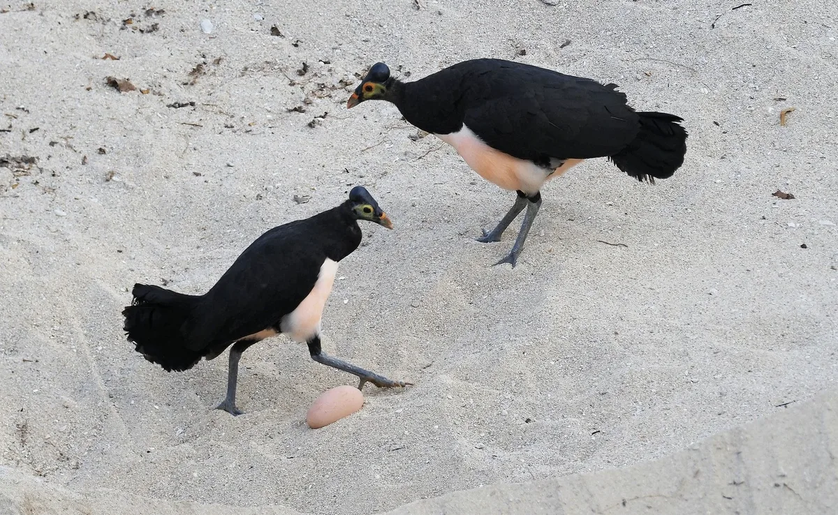 Именно здесь находится стабильный источник тепла — геотермальная энергия. А ещё на берегу удобно зарыть яйца так, чтобы их никто не заметил. Выкопав глубокую яму, самка откладывает всего пару яичек. Нестись как домашние рябушки малео не в состоянии — их яйца в 5 раз больше куриных! При том, что размер взрослой птицы не больше стандартного бройлера.