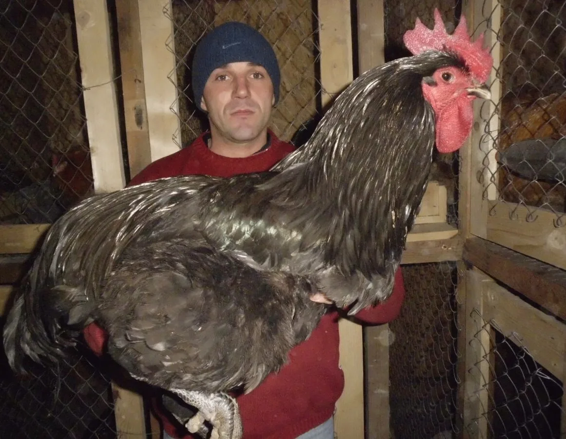 Джерсийский гигант будет в 1,5 — 2 раза крупнее любой обычной курицы: их средний вес — от 5 до 6.5 кг (Сравните с обычной курой на фото 3)! Это габариты солидной индюшки! Создатели всё так и задумывали. На заре становления породы, в 1870 году, Братья Блэки решили, что фермерам пригодится более дешёвая альтернатива индейки. Но получилось даже лучше!