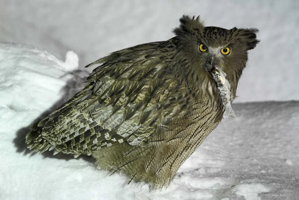 Для полной картины нужно добавить к этим чудикам островной подвид рыбного филина. Рыбные филины — это, пожалуй, единственные летающие птицы, которые вытаптывают тропинки! Любимое занятие этой птахи: расхаживать по берегу, высматривая в мелких речушках и ручьях рыбу, земноводных и раков с моллюсками. Иными словами, уникальные ночные хищники со способностями к бесшумному полёту стали рыбаками, нетерпеливо прохаживающимися по берегу в ожидании добычи. Может, именно поэтому они и обосновались в Красной книге России (фото 5)?
