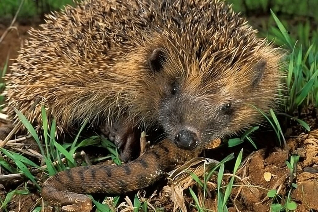 Кроме того, иглы бесполезны и против змей, чешуйчатая кожа надёжно защищает их от уколов. Ядовитые змеи всегда находят, куда укусить ёжика и впрыснуть в него порцию яда. Но и тут ежи подготовились: отравленный ёж не погибает в страшных муках, а просто испытывает несколько неприятных минут, после чего приходит в себя и дальше бежит по своим делам.