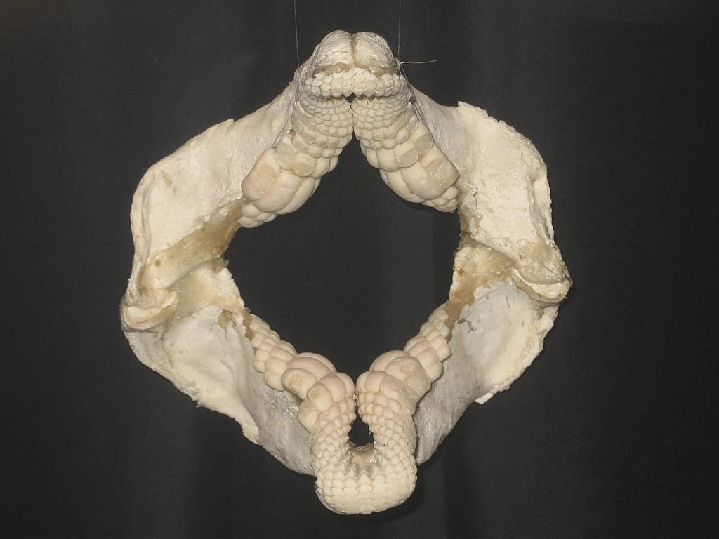 Первая необычность этих рыб — чудовищная дробилка вместо привычного нам акульего ротового аппарата. У рогатых есть специальные зубы двух видов. Первые — более мелкие, расположены на передних концах верхней и нижней челюсти. Они заострённые и служат для захвата добычи. Вторые, или боковые, находятся дальше во рту, имеют уплощённую форму и нужны для измельчения еды. С такими челюстями можно есть самую защищённую добычу в океане: морских ежей, крабов, моллюсков!