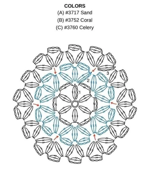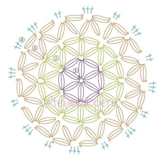 ✅ Конструкция: вяжем квадратное донышко, делая прибавки в углах, затем стенки сумки, одновременно прибавляя и убавляя одинаковое количество столбиков с накидом (ссн) в каждом ряду.