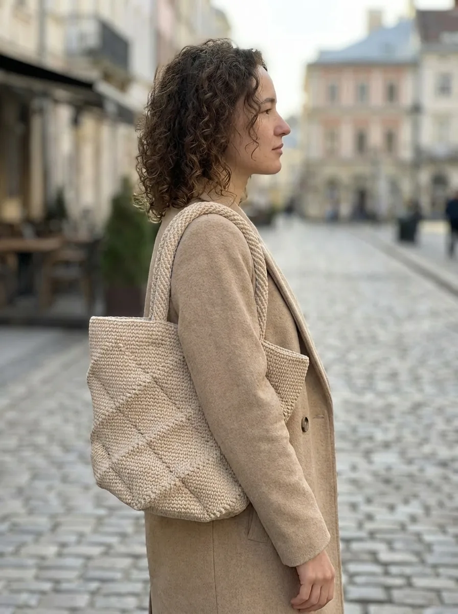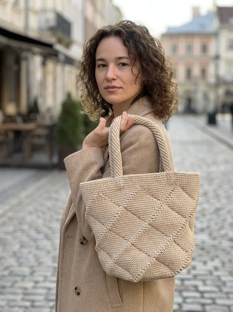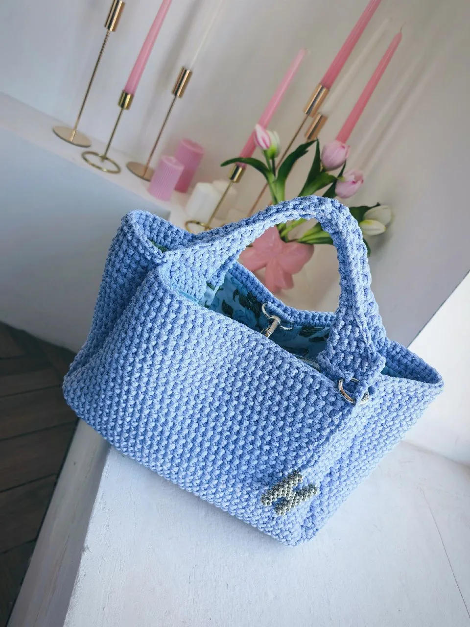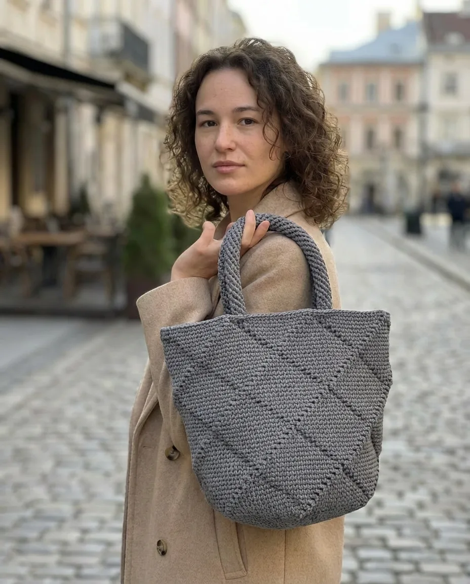 Сумка не сложная, отлично держит форму, вяжется за пару вечеров.
