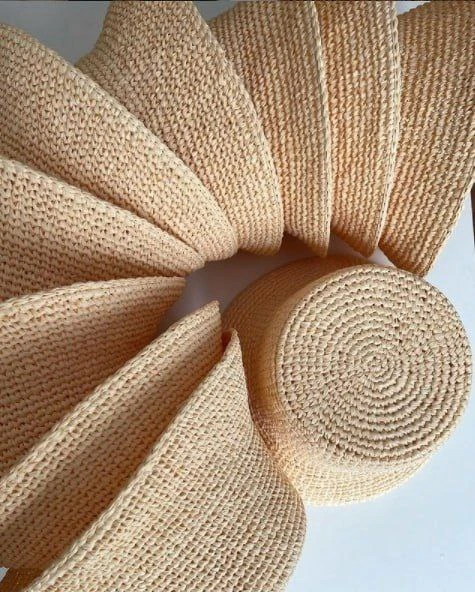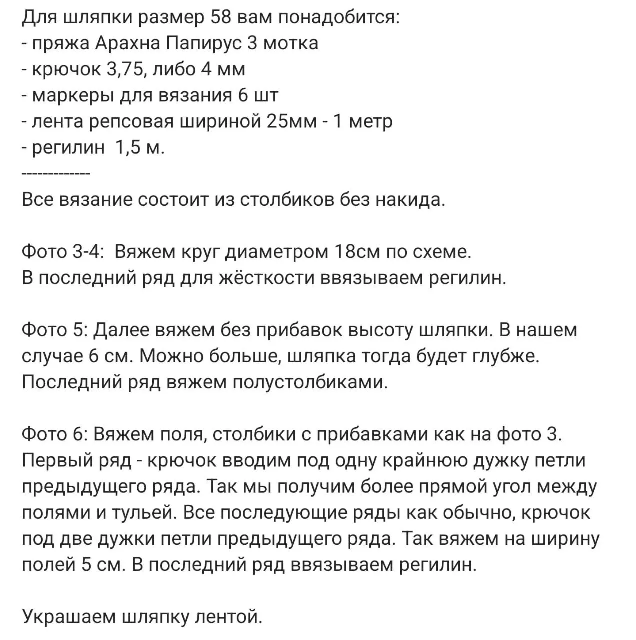 Описание рассчитано на вязание средней плотности крючком 2,5 рафия ISPIE. Вяжем по спирали без переходов. Форма тульи трапеция.