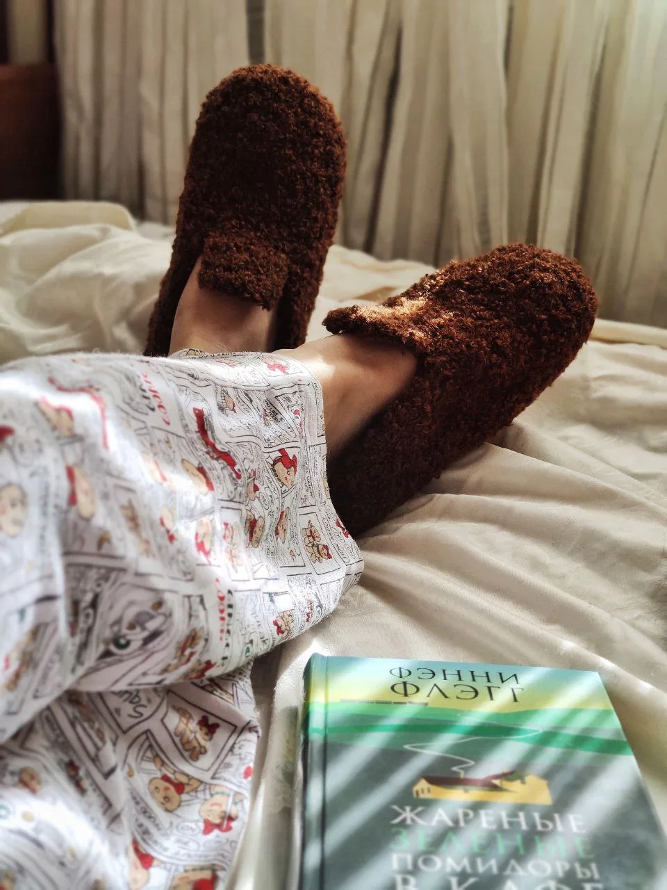 Тройная вязаная стелька + микропористая резина = толстая подошва 3 см, что позволяет использовать эту обувь не только дома, но и на улице!