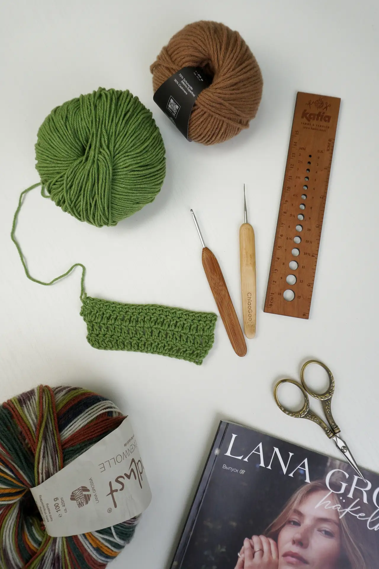 1️⃣ При выборе номера крючка ориентируйтесь на подсказку на этикетке пряжи. Но не пренебрегайте вязанием образца.