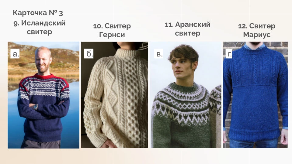 Конечно, речь идет об узорах гернсийских свитеров. Подготовили для вас интересные карточки про изделия с настоящим духом моря 🌊