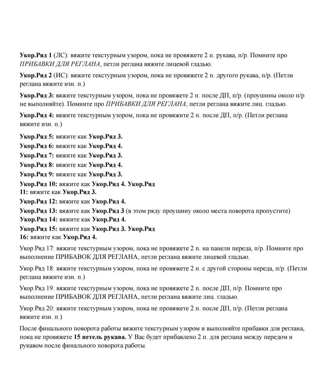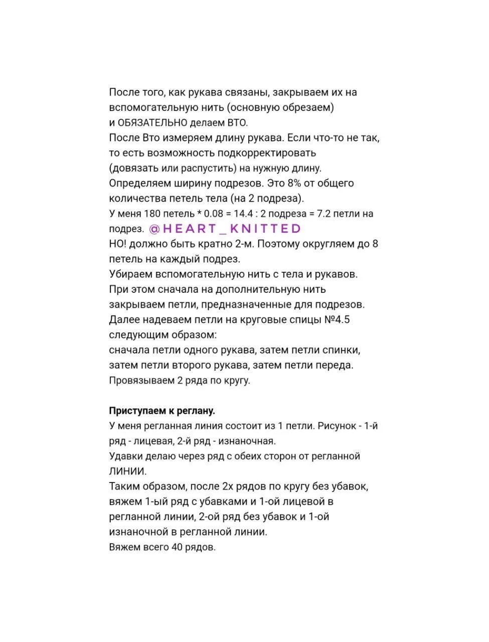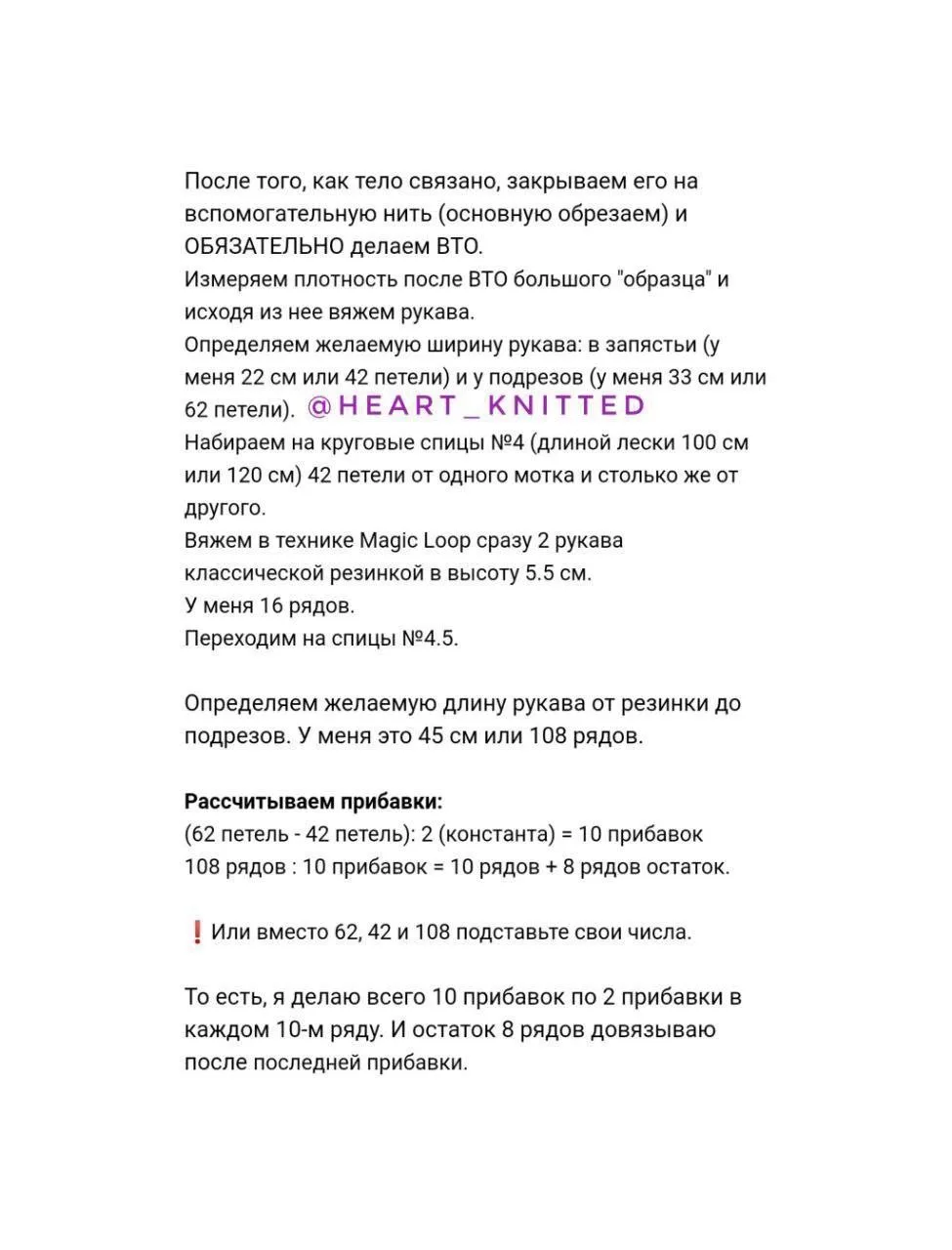 примерно через 10 см, длины регл. линии прибавки на РУКАВАХ делаем в каждом 4 ряду, то-есть пропускаем одну прибавку 📍