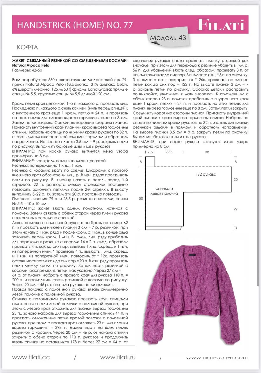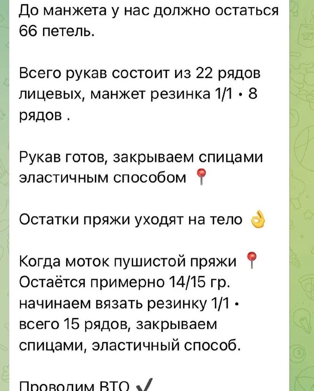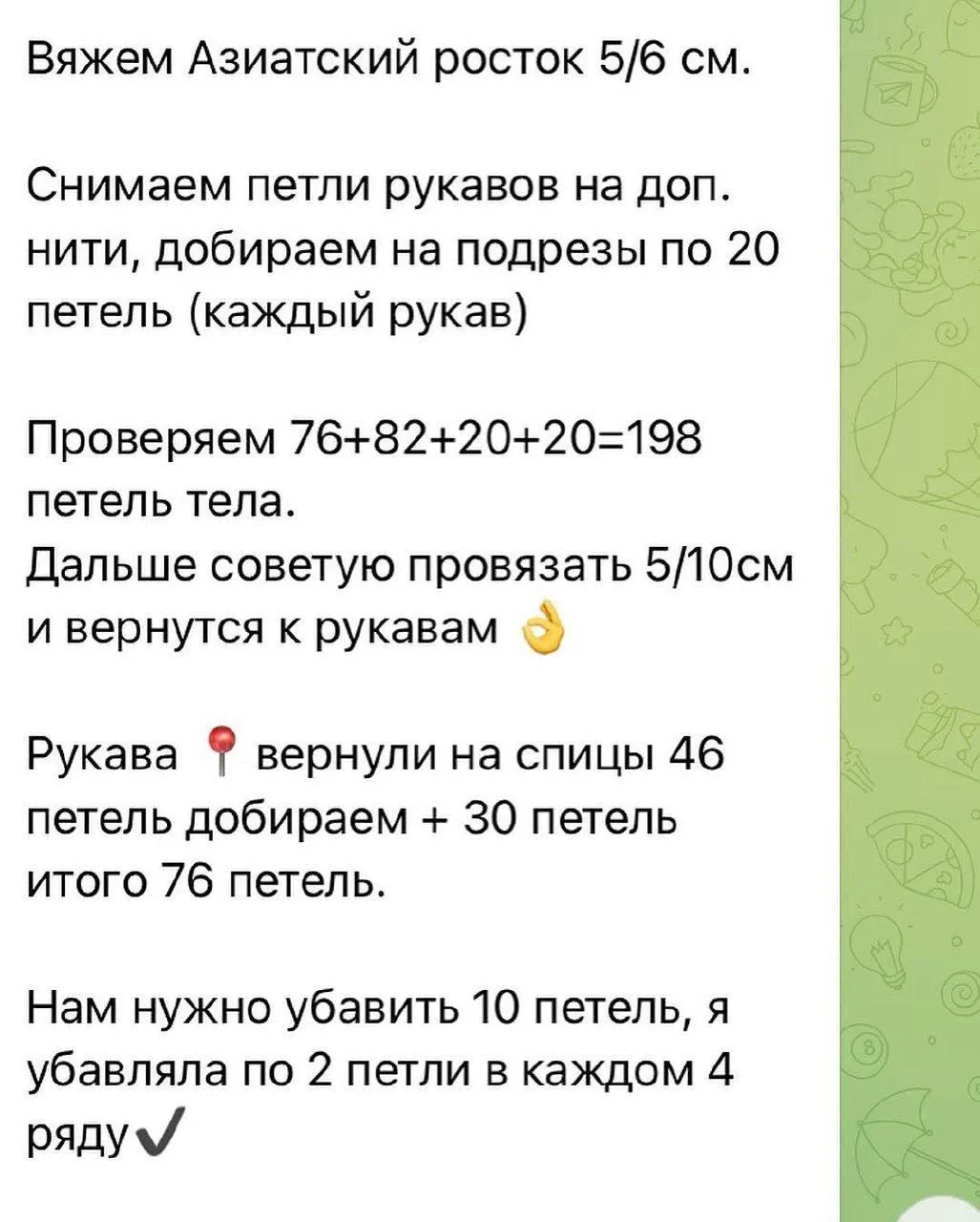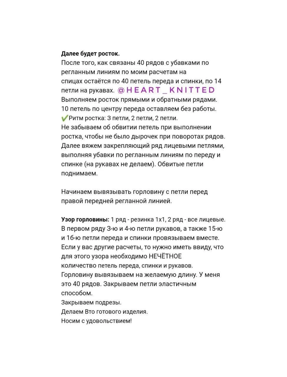 примерно через 10 см, длины регл. линии прибавки на РУКАВАХ делаем в каждом 4 ряду, то-есть пропускаем одну прибавку 📍