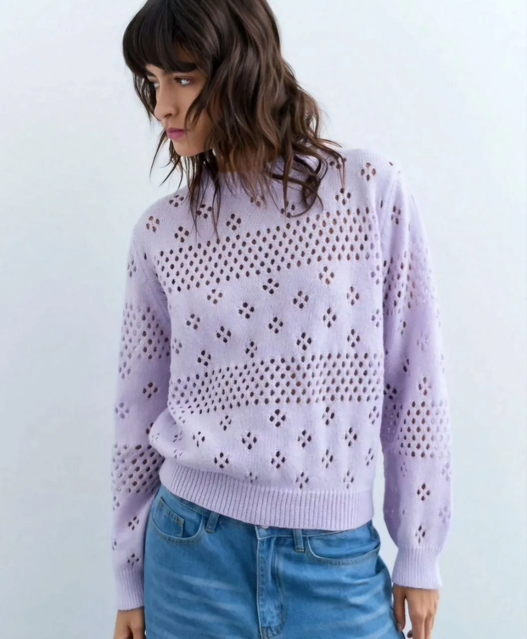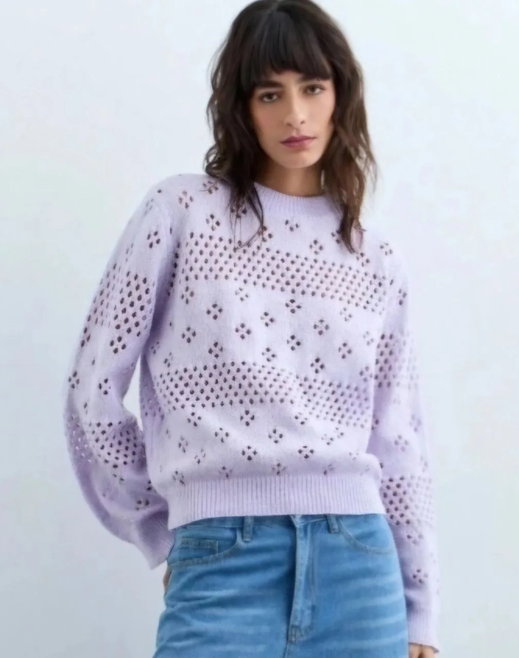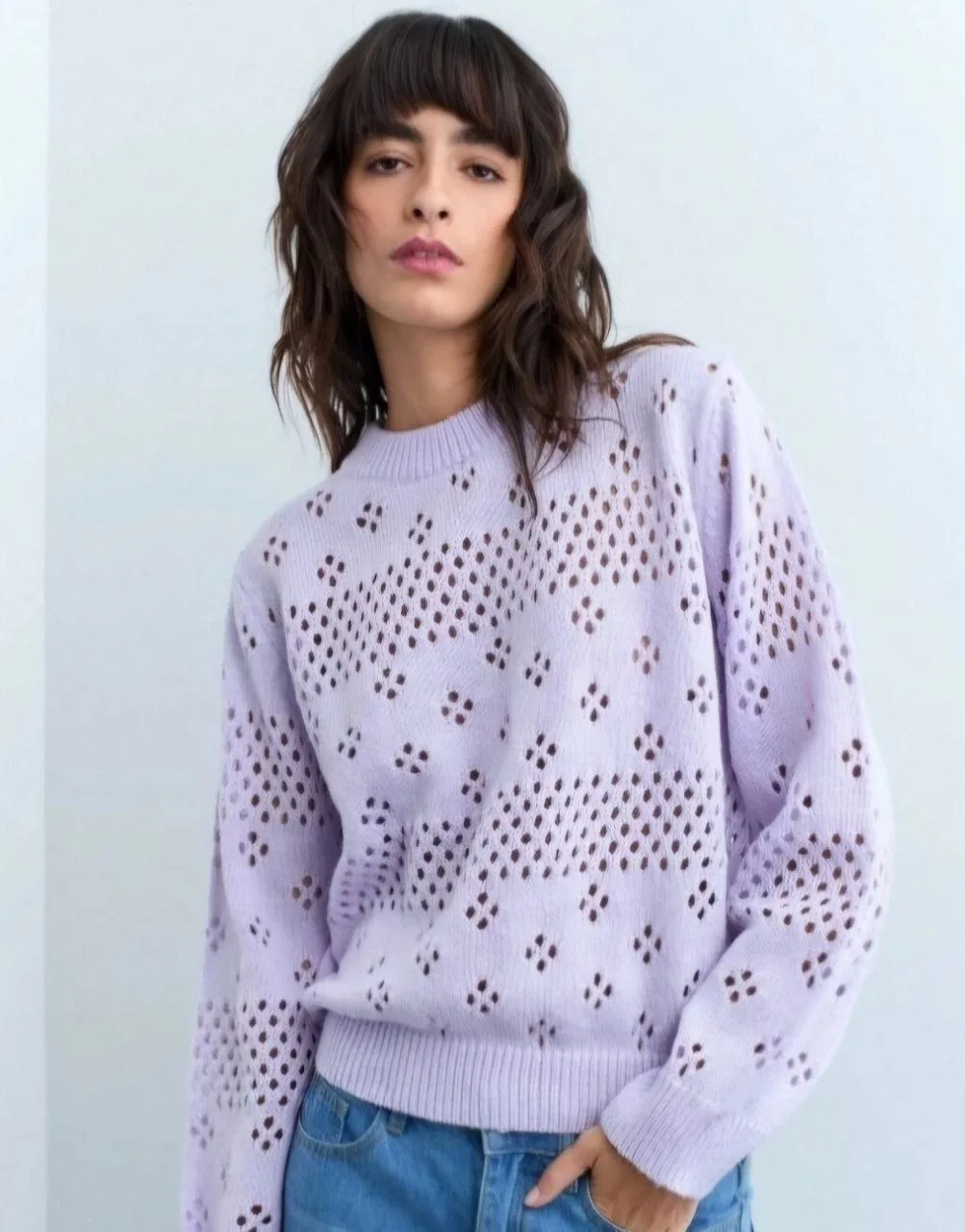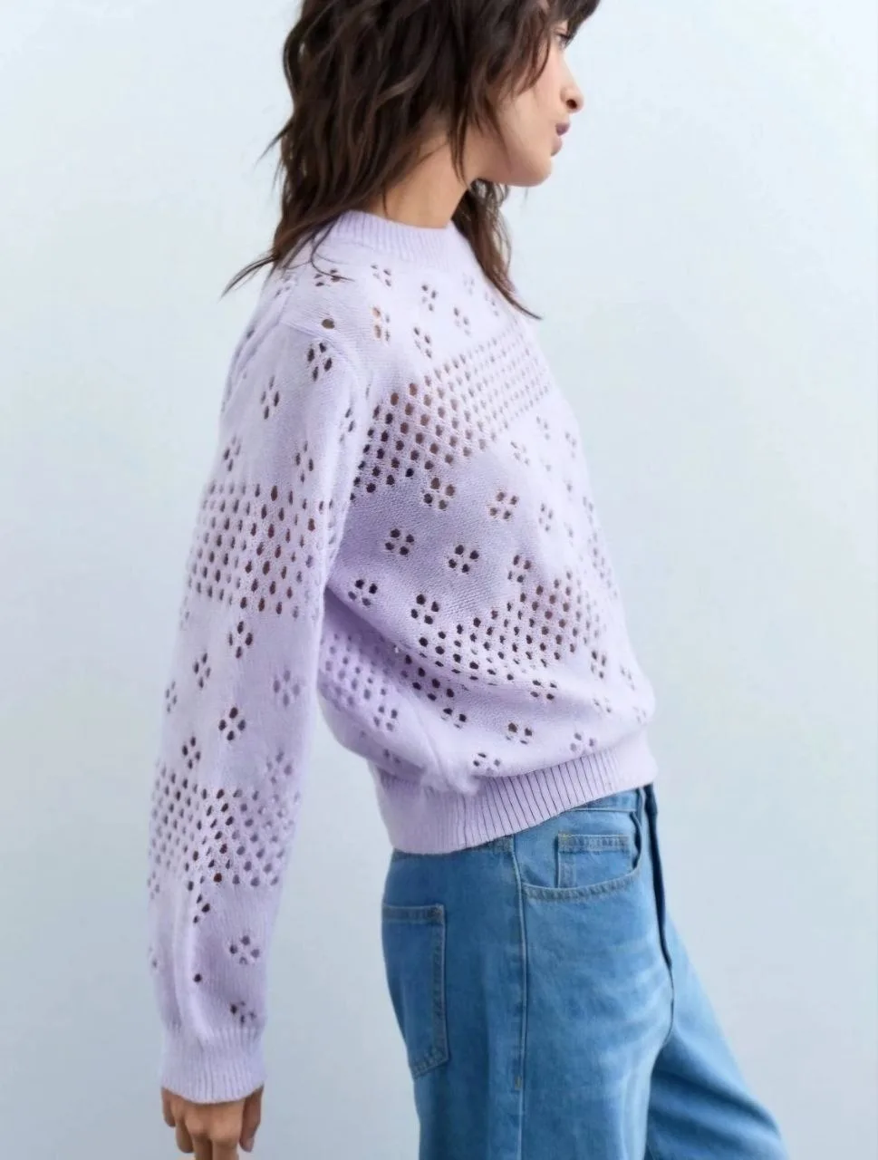 Ажурные регланные линии придают этому свитеру невероятный шарм