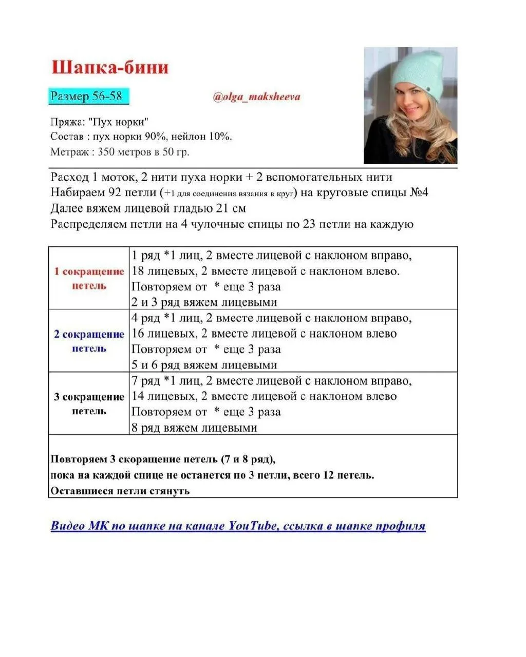 БЕСПЛАТНОЕ ОПИСАНИЕ БЕРЕТА ОТ @shapushka_store на 2 размера 54-56/57-59 🥳