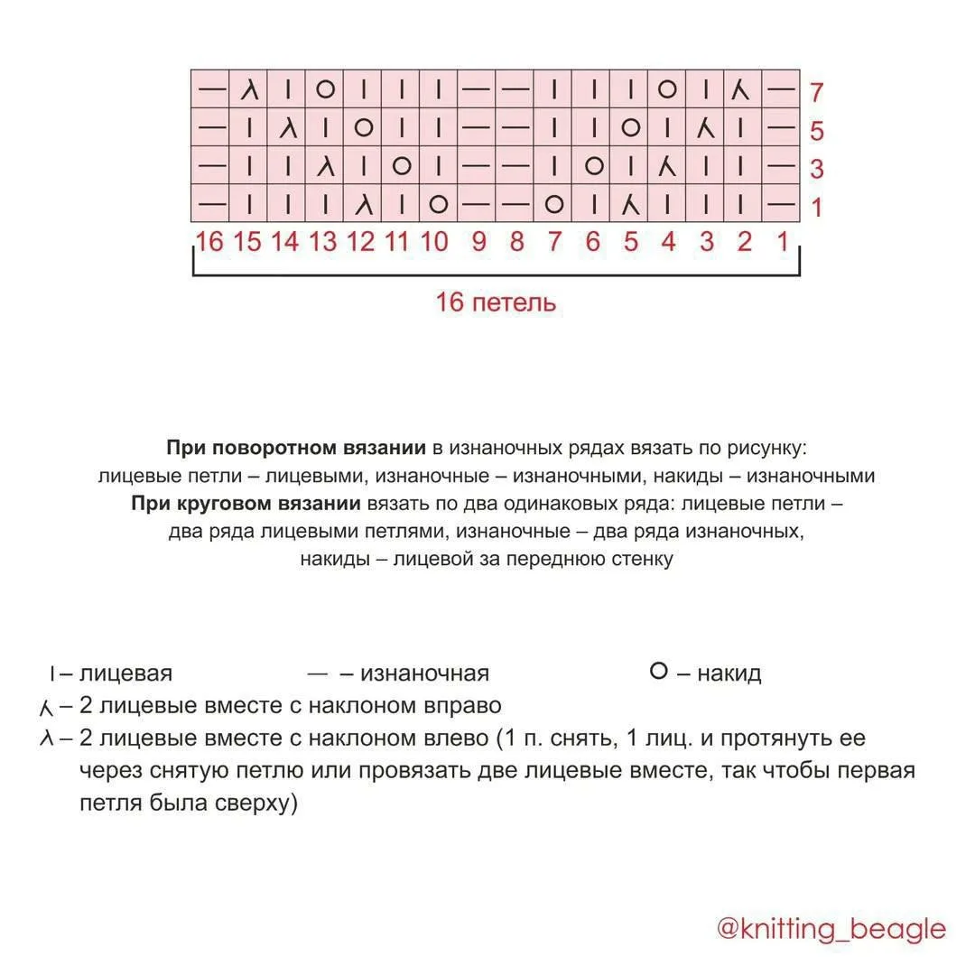 Убавки делаем с двух сторон от центральных петель: с наклоном в право и с наклоном влево.