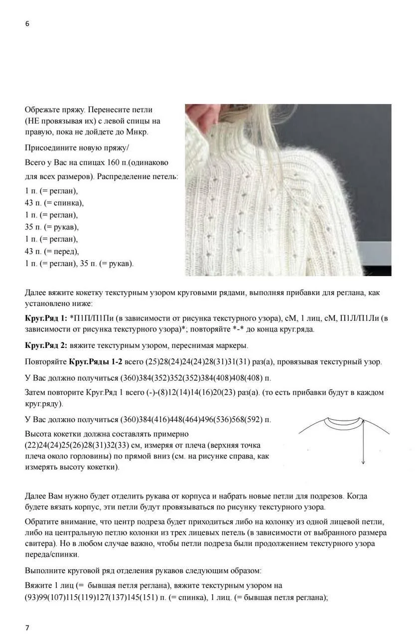 Распределяем все петли: спинка 24 п, перед 32 п, рукава по 10 п. И 4 регланные петли.