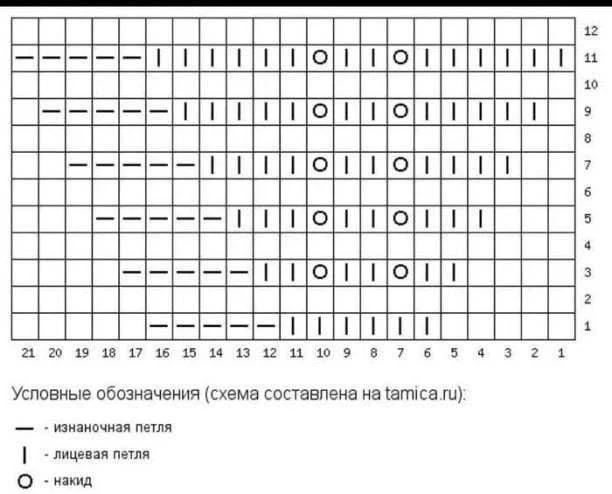 Узор «Узелки»: Кратно 10+7+2 кромочные.
