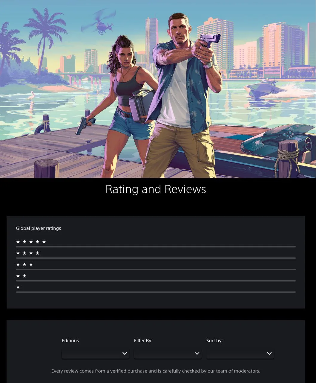 В PS Store обновилась страница GTA 6 — добавили раздел с оценками.