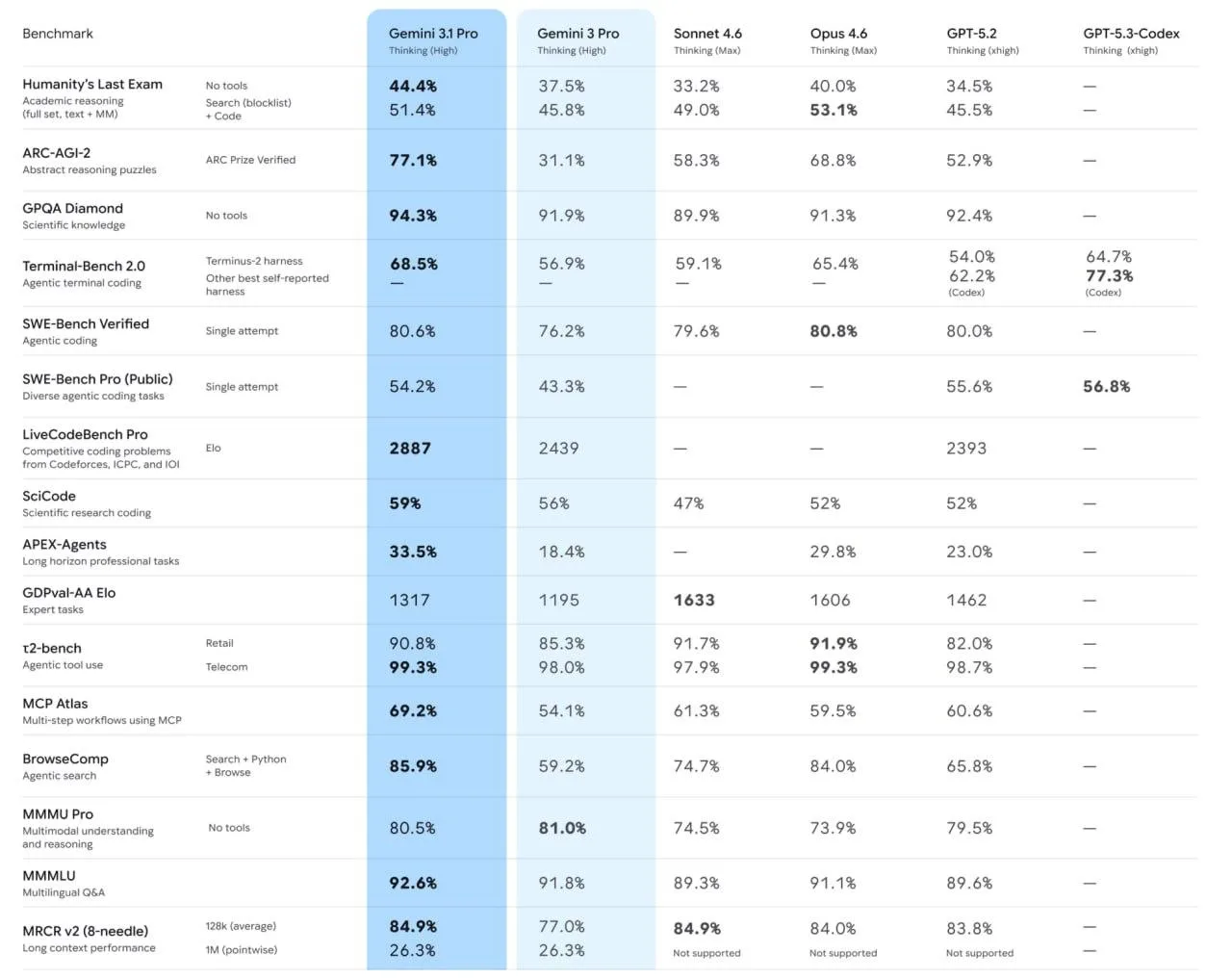 Google под шумок выпустил Gemini 3.1 Pro — лучшую нейросеть, показывающую себя в абстрактном мышлении на уровне человека.