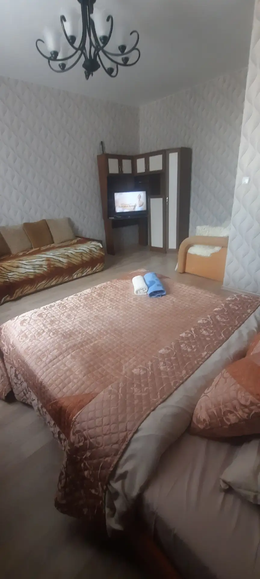 На днях освобождается просторная однокомнатная квартира. В квартире три полноценных спальных места: двухспальная кровать 160/200, односпальная кровать, мини диван, раскладывающийся вперед. Комната зонирована. Есть абсолютно все для проживания: из техники- телевизор, микроволновка, чайник, холодильник, стиральная машина, тостер, современные занавески, полотенца, постельное белье, вся посуда, сушилка, гладильная доска, утюг. Везде натяжные потолки. Квартира большая и просторная. Будет выполнена качественная клининговая уборка перед новыми жильцами. Жду хороших людей. Хорошо отношусь к командировочным. Я - собственник, так что все вопросы - решаемы. Остальные вопросы - в личку. Квартира - в центре, с парковкой авто проблем не будет никогда в любое время суток. Остановка общественного транспорта - у дома. Интернет, вай-фай