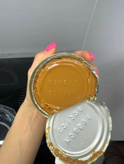 вскрыла сгущенку а там пропечатались цифры!!! выбросить или можно эту верхнюю часть ложкой убрать, а остальное детям положить?
