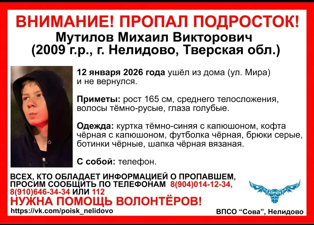 #пропал_подросток #Мутилов #Нелидово #Тверская_область #впсо_сова #впсосова poisktver.ru