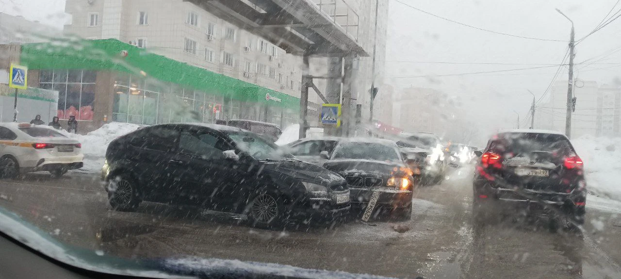 Весенняя - большая пробка в 2 стороны. Со стороны больницы уборка снега, со стороны Самохвала ДТП.