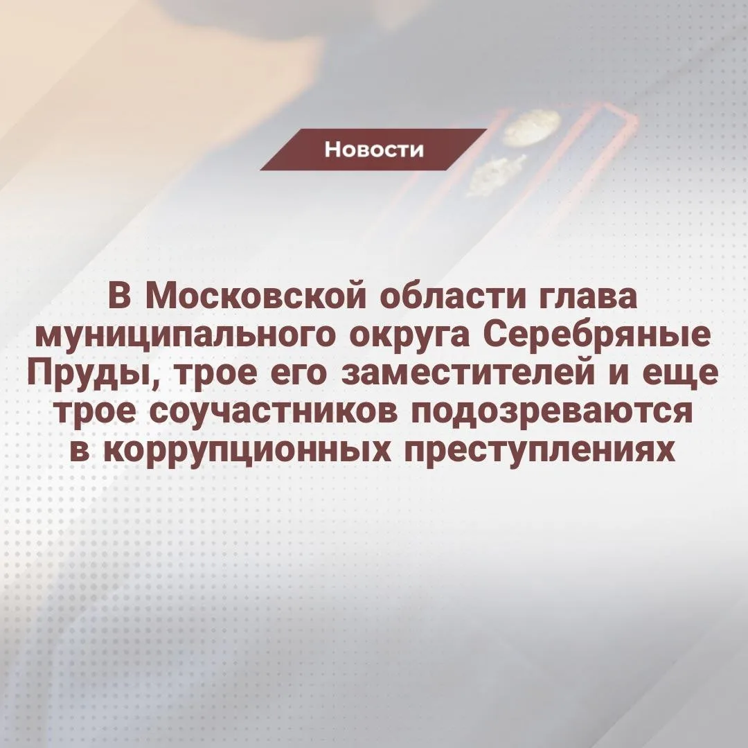 В Московской области глава муниципального округа Серебряные Пруды, трое его заместителей и еще трое соучастников подозреваются в коррупционных преступлениях