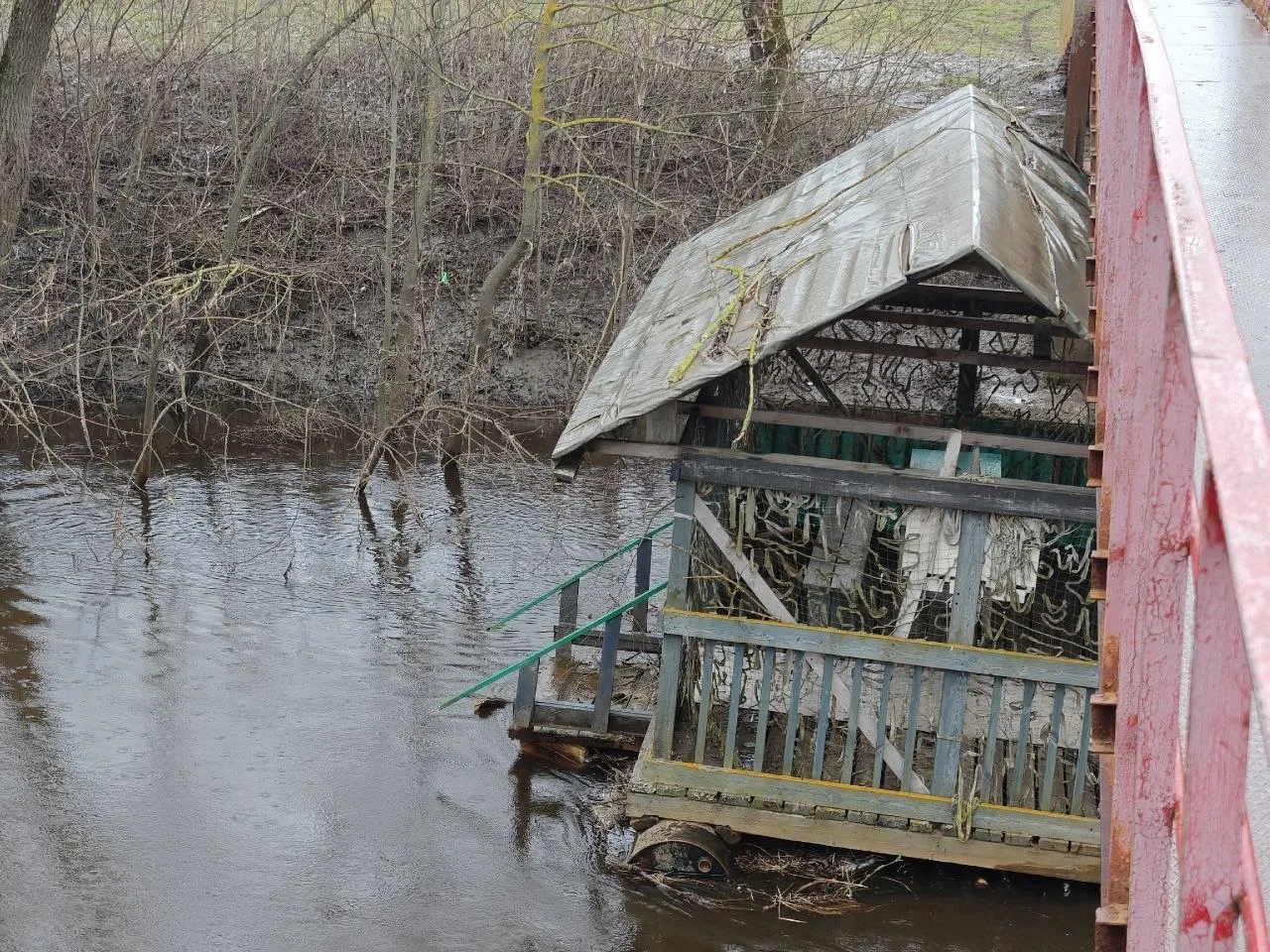 Путешествие в Дединово и уплывшая беседка на р. Ройка застрявшая под пешеходным мостом.