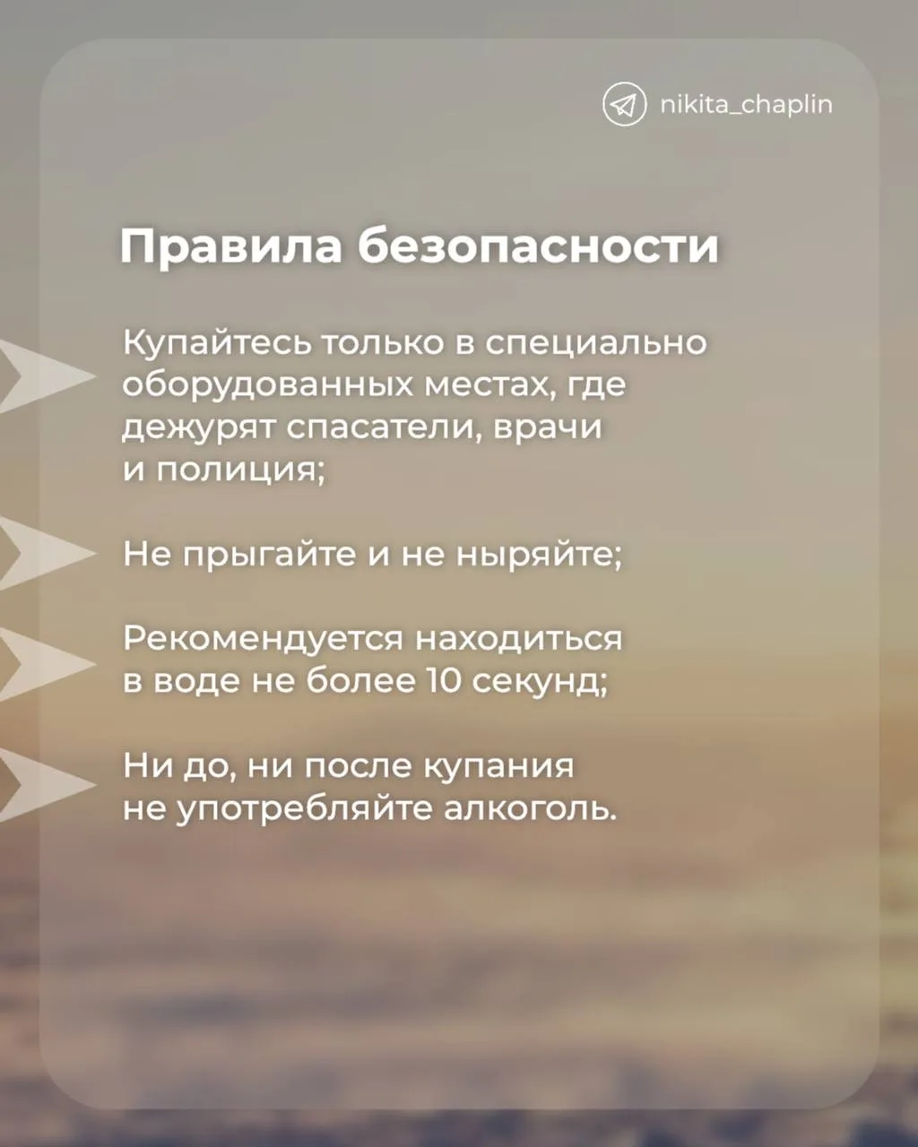 ✦ категорически запрещено купание в состоянии алкогольного или наркотического опьянения!