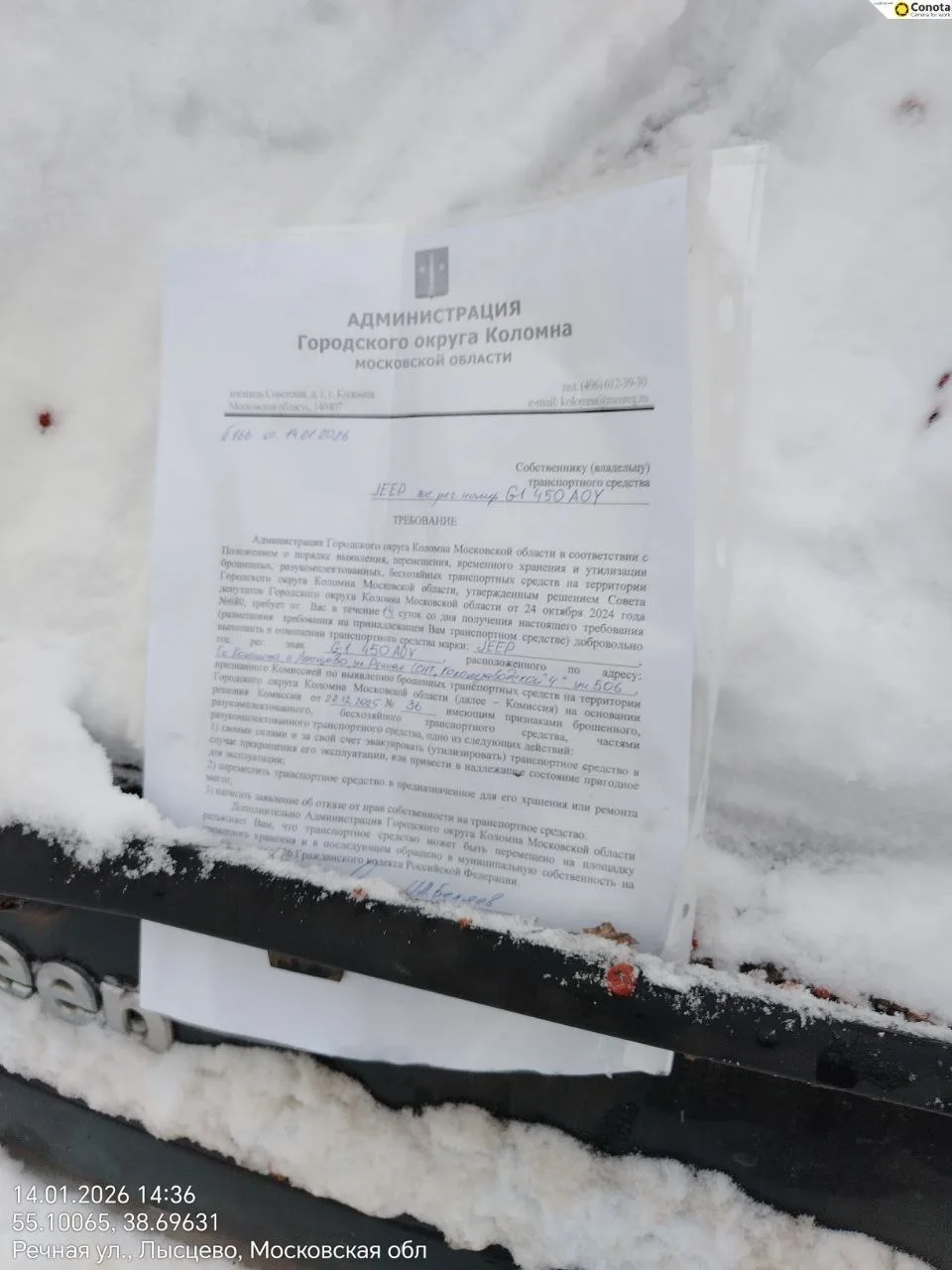 Разыскивается собственник (владелец) транспортного средства марка/модель JEEP, госномер G1 450AOY, размещенного по адресу: у забора участка 506, СНТ «Коломзаводской 4», по ул. Речная, п. Лысцево, Г.о. Коломна.