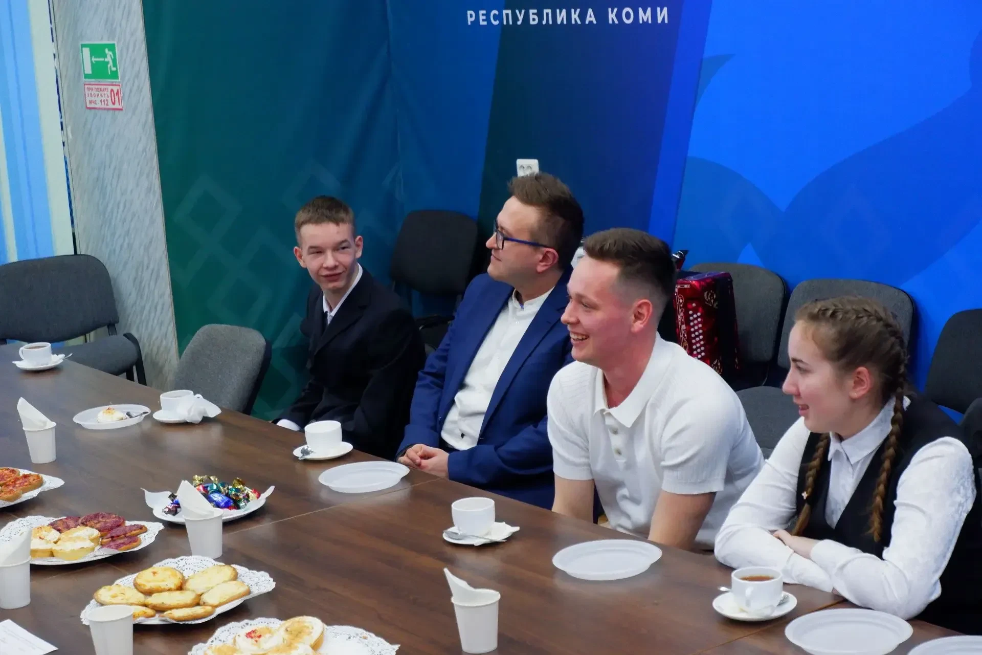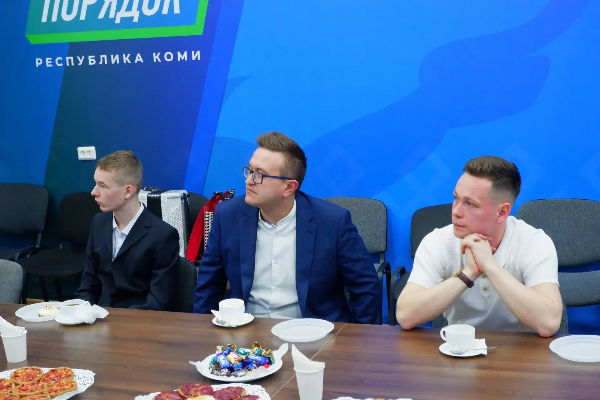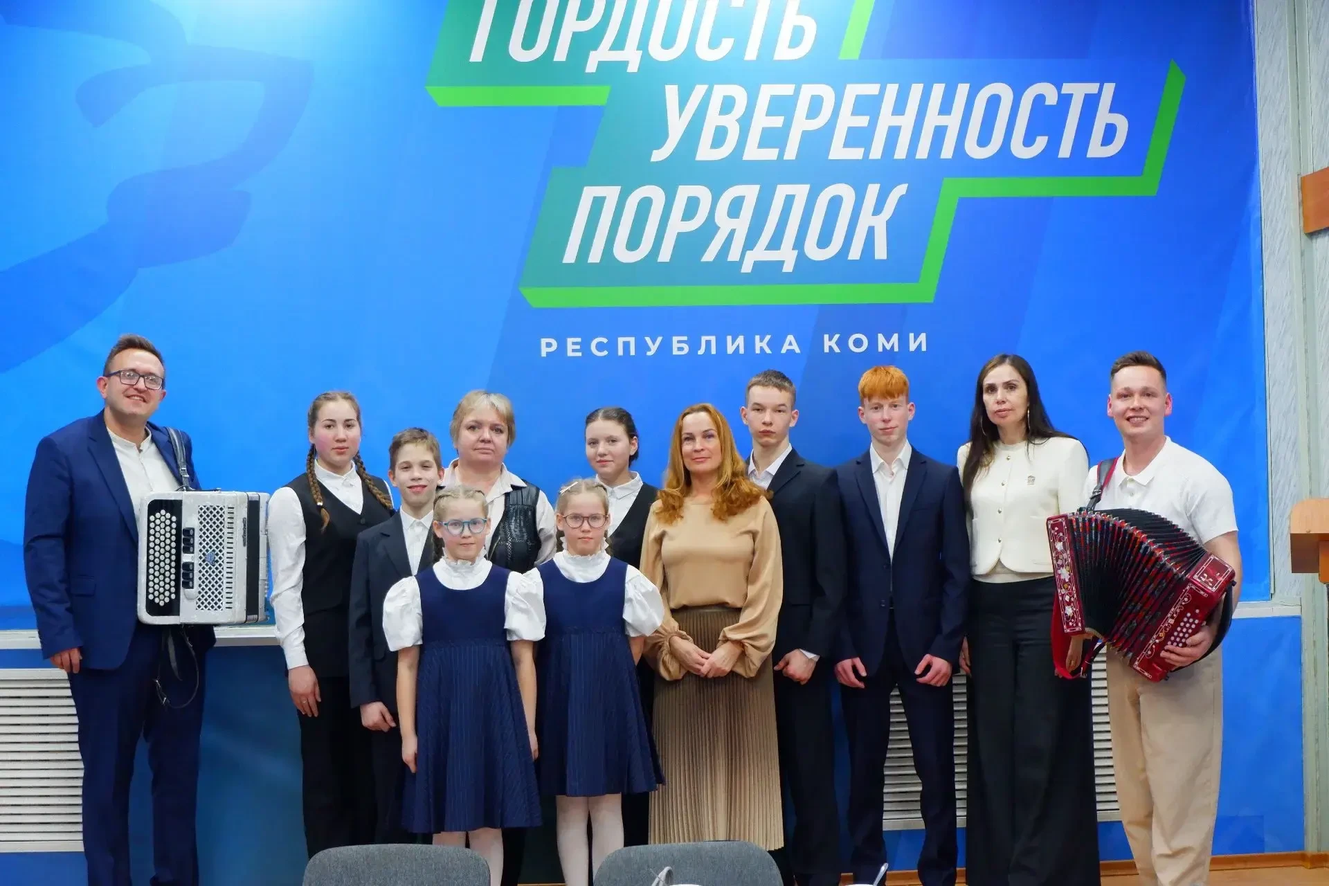 🔹 Помимо обсуждения вопросов помощи фронту, для ребят организовали творческую часть. Коми артисты Владимир Трошев и Захар Петрушин исполнили несколько песен и пообщались с ребятами в неформальной обстановке. Воспитанников сопровождали воспитатели Анна Мажутко и Елена Нестерова.