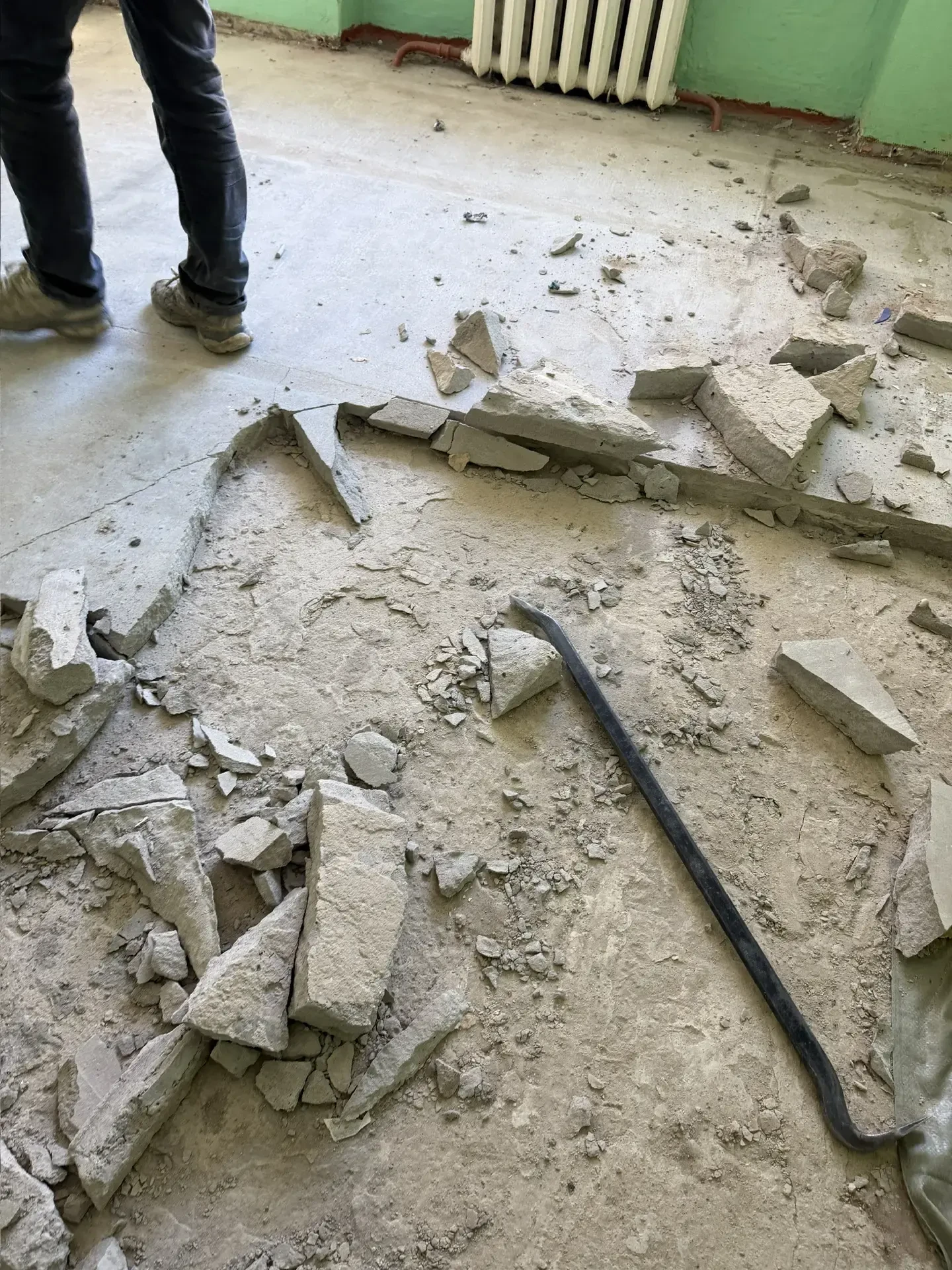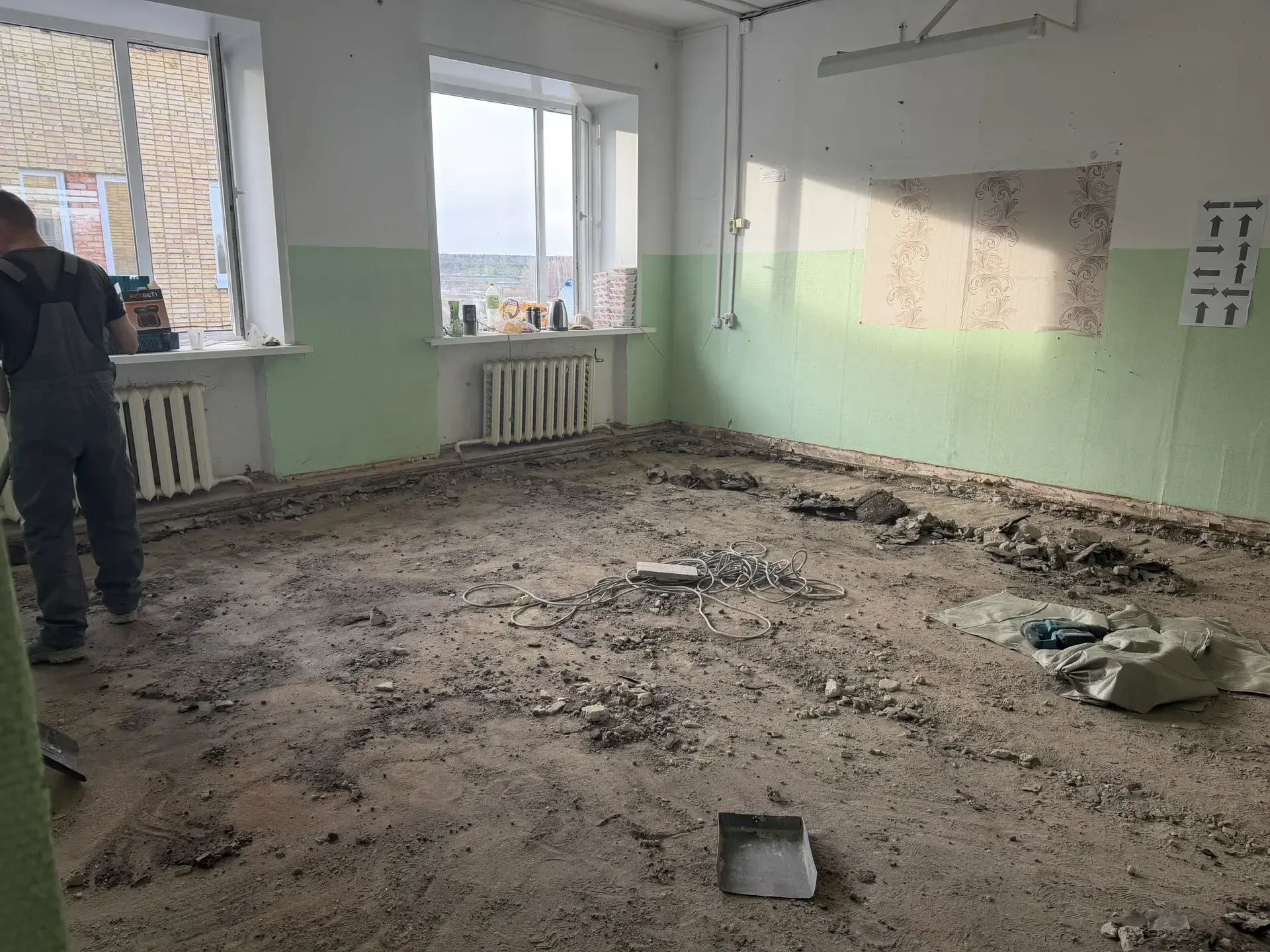 ✅На сегодняшний день на объект уже доставлены все необходимые материалы для проведения капитального ремонта. В работах задействованы 7 квалифицированных специалистов. В настоящее время рабочие выполняют два ключевых этапа одновременно: ведут демонтаж старого покрытия пола и приступают к укреплению основания и заливке нового пола.