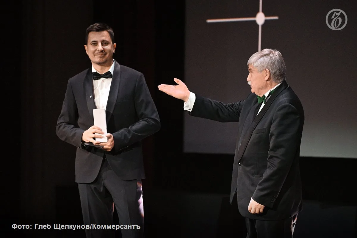 Награду в номинации «Аналитическое медиа года» получил ИД «Коммерсантъ». Магистр «Что? Где? Когда?» Виктор Сиднев вручил ее руководителю интернет-выпуска «Ъ» Александру Павлову.