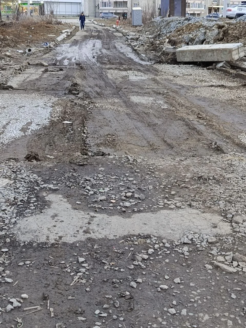 Хочу поделиться новостью, пишет Вероника. Застройщик ЛСР убрал плиты возле Хрустальных ключей. И теперь нам приходится тонуть в грязи: машины ломают подвески, мамы с колясками кое-как добираются до магазина. Дети по колено в грязи.