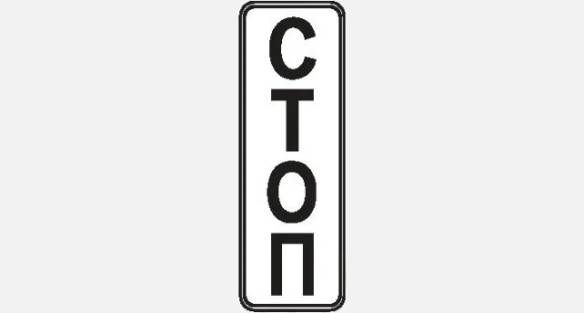 Вертикальную табличку 6.16.1 «Стоп-линия» (белый прямоугольник с черной надписью «стоп») будут размещать в местах, где нельзя нарисовать белую полосу на асфальте, а применение аналогичного горизонтального знака затруднено.