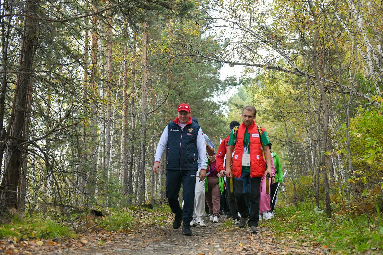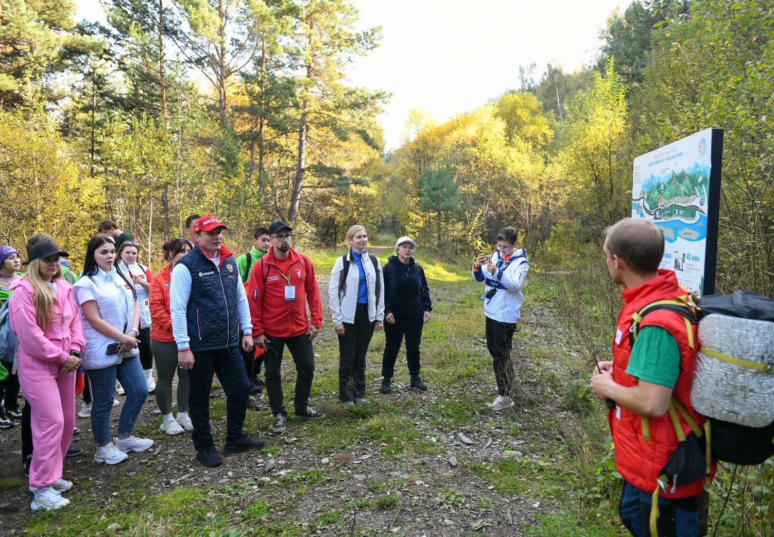 Сегодня встретился и пообщался с участниками слёта. Вместе с ними прошёл по тропе «Майнский ключ». Этот переходный маршрут проложен по насыпи бывшей железной дороги, по березово-сосновому лесу с видами на могучий Енисей.
